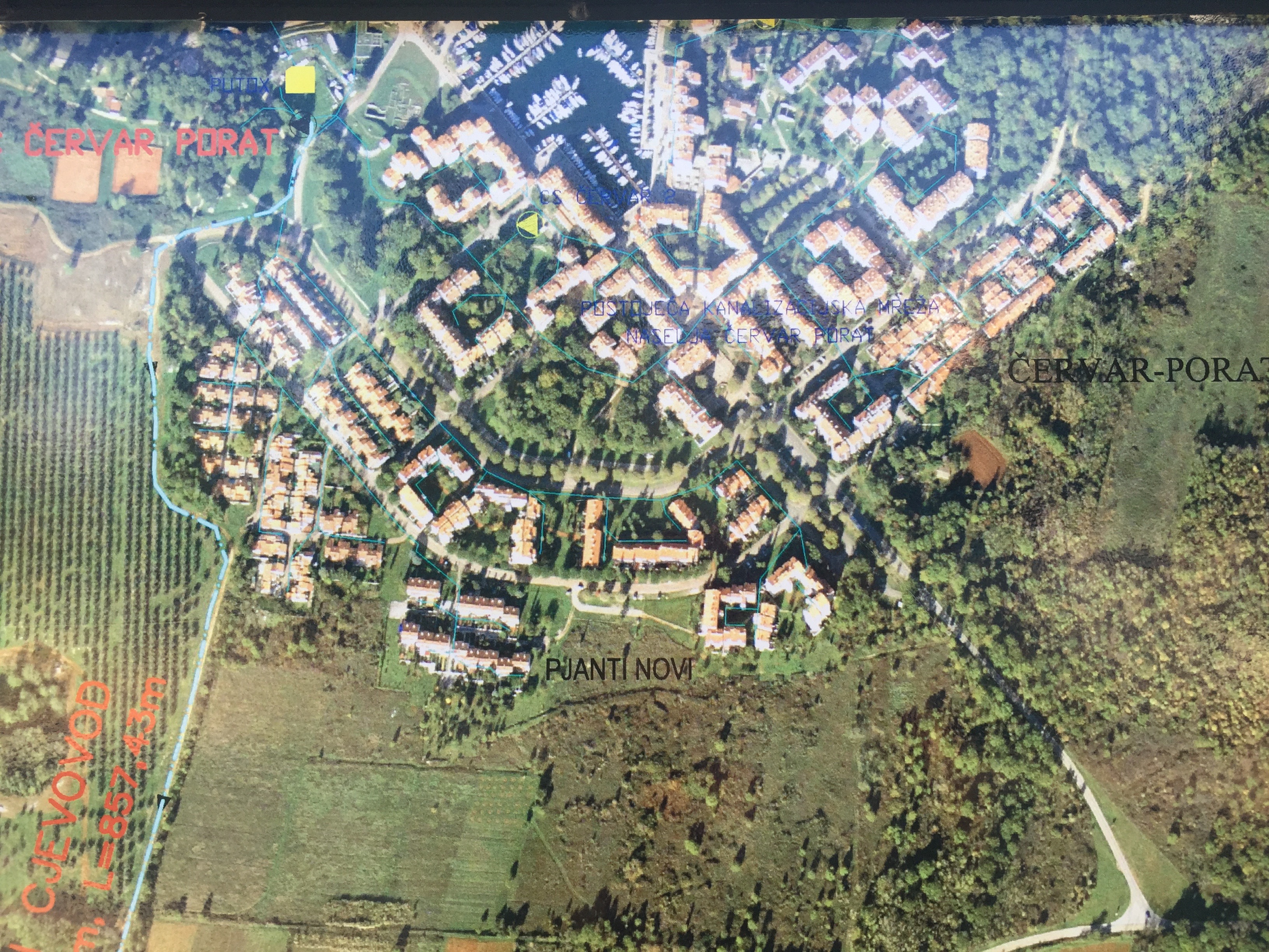 Vor ca. sechs Jahren sahen wir während unseren ersten Kroatienferien auf «Maps» dieses Satellitenbild. Wir waren neugierig was es mit dieser Anordnung der Häuser auf sich hatte und fuhren zum ersten Mal da hin. Červar Porat ist eine in die Jahre gekommene Feriensiedlung die von Tito erbaut wurde und in den 80iger Jahren ihre Hoch-Zeit erlebt hatte. Nach seinem Tode und durch den Krieg schaffte es die Siedlung nur schlecht, erhalten und gepflegt zu werden und diese Aura haftet Červar Porat bis heute an! Man kommt sich vor wie im tiefsten Osten und die Zeit scheint stehen geblieben zu sein. Seit einiger Zeit sind die Kroaten aber dran den Ort zu verändern!