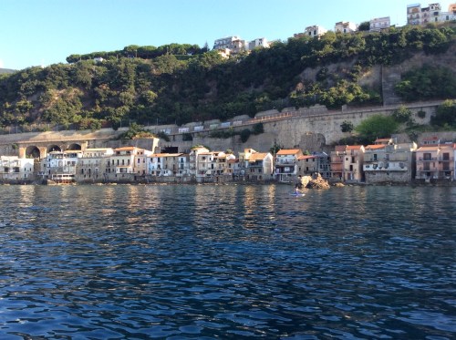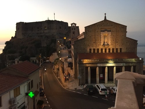Am Abend landeten wir in einem altehrwürdigen Ort, in Scilla, an. Schon der Blick von weitem war ein Highlight. Ein riesiger Felsen mit Burg prangt ins Meer hinaus, dann, dicht an dicht, schmiegen sich die dezent farbigen Häuser an den Hang, um die Burg herum, zu beiden Seiten. Die nördliche Seite neben dem Felsen war ursprünglich das Fischerdorf. Die Häusen sind in einer langen Zeile direkt am Meer gebaut und der Blick durch die Gassen hinunter zum Meer, zu den farbigen Böötchen, grandios. Zufälligerweise trafen wir gerade den Tag wo die Stadt ihr Stadtfest feierte! Überall hingen Fahnen mit «Scilla-Scintilla» darauf geschrieben. (Alle Solothurnen hören auf! Aber wir wissen leider den Zusammenhang der beiden Namen nicht!) Uns so war im ganzen Ort etwas los. Handwerks- und Essensstände, Konzerte, Historische Attraktionen und live Musik auf der Strasse. Wir schlenderten herum und genossen das ganze Treiben, besichtigten die Burg und blickten auf den, zu früheren Zeiten strategisch sehr wichtigen Ort, direkt am Ende der Strasse von Messina, hinunter. Ein toller Ort der sich in meinem Gedächtnis eingeprägt hat!