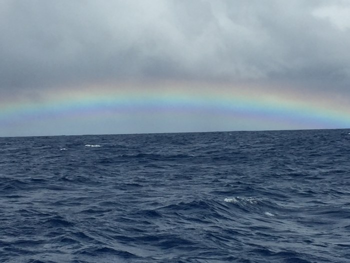 Wir haben in dieser Zeit auch unser Schiff sehr gut kennengelernt. Haben weitere Erfahrungen gemacht beim Segeln, wieviel Segelfläche es leiden mag und wie das Schiff in den Wellen reagiert. Stromversorgung über so lange Zeit, war auch ein Thema. Unser Autopilot läuft ja 24h und braucht den grössten Teil Energie. Wenn die Sonne schien blieben unsere Batterien voll aber sobald ein bewölkter Tag war, hatten wir zuwenig Energie für den Autopiloten. Normalerweise lässt man in dem Fall den Motor laufen, was immer ein bisschen widersinnig ist bei genügend Wind. Kim konnte auf diesem Trip zum ersten Mal ausprobieren, die Batterien mit dem Generator den wir gekauft haben, aufzuladen. Das hat, nach anfänglichen Schwierigkeiten; er stellte bei jeder grossen Welle ab, nun doch wunderbar funktioniert und gibt uns wieder eine technische Unabhängigkeit.