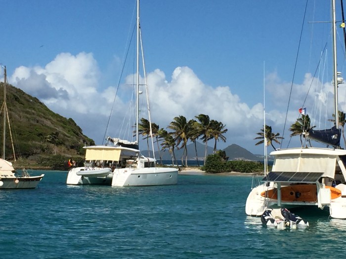 In der Marina trafen wir eine schweizer Familie mit drei Kindern, die auch seit dem Sommer auf einem wunderschönen, alten Holzschiff, der Paloma, unterwegs sind. Sie stecken im Hafen von Le Marin für einige Wochen fest, da sie etwas in den Propeller bekommen hatten und nun die Welle gebrochen war. Um dies zu flicken musste das Schiff aus dem Wasser gehoben werden um es auszumessen und wieder zurück ins Wasser gebracht, werden. In der Zeit wird dann das Teil gefertigt und danach muss es wieder aus dem Wasser, um es zu montieren – einen riesen Aufwand. So war es auch verständlich, dass der Kapitän der Paloma ein bisschen frustriert war. Eigentlich wollte er mit seiner Familie für vier Jahre unterwegs sein, doch nun sind sie am überlegen, ob sie daraus nur ein Jahr machen und wieder zurücksegeln wollen! Auch ein junges Päärchen aus England, die wir von der ARC kennen und hier in Le Marin wiedergetroffen haben, haben mit ihrem Schiff, der Odysse, immer wieder Probleme. Das kann schon an das Vertauen gehen und vorallem auch ans Geld! Nach drei Nächten in der Marina, Einkaufen und das Hafenleben geniessen, machen wir uns wieder auf, zur unserer nächsten Karibikinsel in Richtung Süden, St. Vincent.