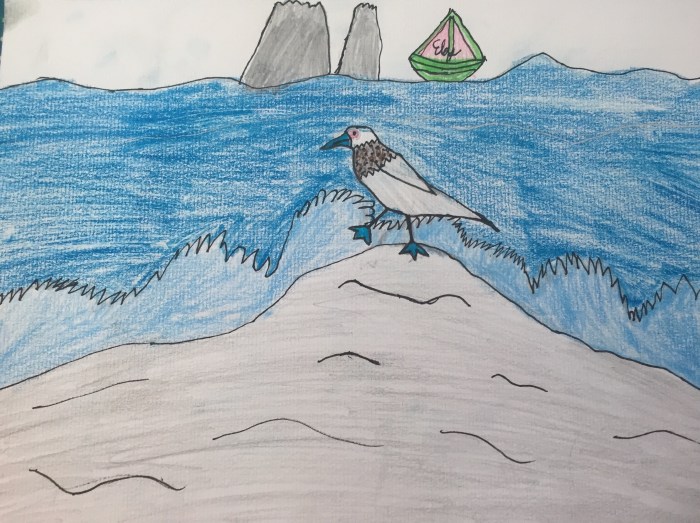 Der Lebensrythmus während der Ûberfahrt hat sich nun wieder so richtig eingependelt. Es gibt viel Zeit zum Tagträumen, lesen, spielen oder zeichnen. Neele malt die witzigsten und schönsten Bilder, egal bei welchem Wellengang! Vorallem die Tierwelt von Galapagos hat es ihr angetan: Sie malt kunstvoll Seelöwen, Blaufusstölpel und Pinguine. Unsere Nachtwachen haben wir auch gut im Griff. Immer um 23 Uhr, 02 Uhr und 05 Uhr lösen wir uns ab, mit Schlafen und Wachen.