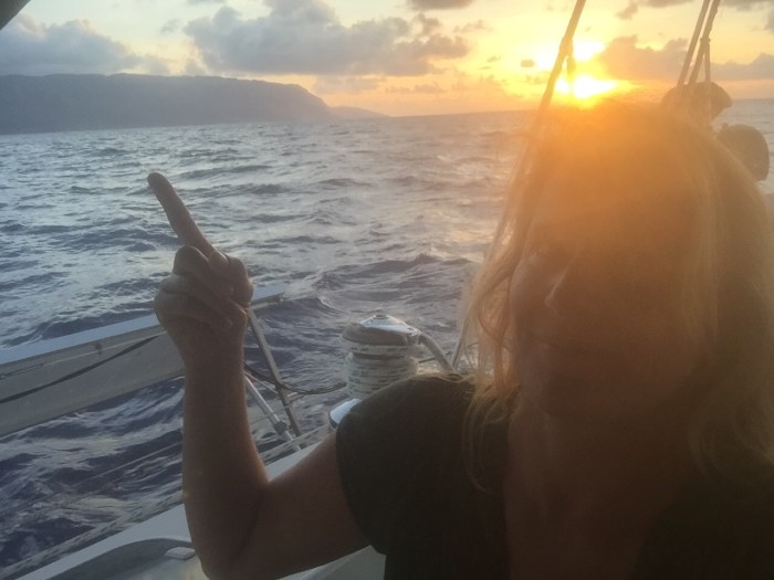 Mit viel Wind sind wir vorgestern mit über sechs Knoten vorangekommen. Wir rechneten uns schon mit Freude aus, dass wir bei dieser Geschwindigkeit am Donnerstag Abend ankommen werden. Doch der Wind war ja so wechselhaft, dass wir das Tempo nicht halten konnten. So mussten wir zwölf Stunden überbrücken, weil wir nicht in der Nacht ankommen wollen. Nun ist es frühmorgens, der Horizont ist leuchtend orange mit Wolken bespickt und wir schaukeln mit unseren drei Knoten an der Küste entlang. Die Ganze Nacht waren wir mit diese Geschwindigkeit unterwegs. Nach dieser langen Zeit nur Meer und Himmel als Horizont, kommt uns dieser Anblick der marquisischen Insel ganz unwirklich vor. Das Tageslicht wird immer stärker genug zur sicheren Anfahrt zum Ankerplatz in Atuona, Hiva Oa.