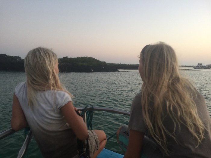 Trotz dem weinenden Auge, dass wir die schönste der Galapagos Inseln, Isabela, nur so kurz besichtigen konnten, waren wir überzeugt, das Richtige zu tun. Doch unterdessen sind wir nicht mehr so ganz sicher: Wir sind seit wir unterwegs sind, am Motoren. So hatten wir uns das nicht vorgestellt! Normalerweise, sagt man, muss man bei dieser Strecke ca. zwei Grad südlich segeln, um den Passatwind zu kriegen. Unterdessen sind wir beim fünften Grad angelangt und werden wohl noch ein Grad südlich weiter den Kurs halten, um dann endlich auf den Passat zu stossen. Das war eigentlich was wir auf der Gribdatei gesehen hatten und vermeiden wollten! Und es schaute auch so aus, als ob wir noch genügend Wind haben werden, um zu segeln. Doch um ein paar wenige Knoten war es um die Segelfähigkeit, wegen den hohen Wellen getan: Die Segel schlagen…. Zu Beginn hatten wir noch das Glück die Meereströmung mit uns zu haben, so waren wir mit dem Motor anstatt nur 5 Knoten, 7 Knoten unterwegs – immerhin.
