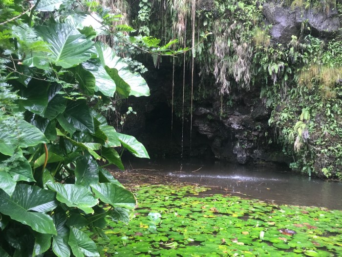 Dann gab es an der Uferstrasse noch die tollen, grossen, tropfenden Lavahöhlen, die an ihren Steilwänden üppig mit allen Arten von Grün, bewachsen sind.