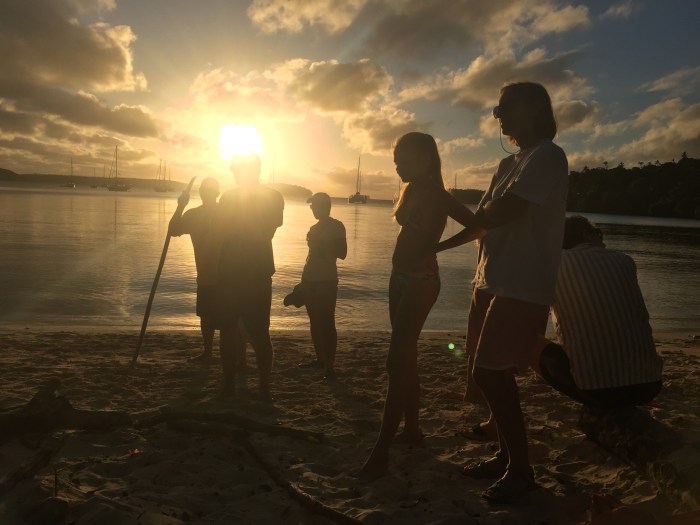 Nochmals gemeinsam ein Feuer und ein Barbeque am Strand machen, das wäre toll! Lustigerweise kam eine Stunde später das französische Boot «Wigwam» zum selben Ankerplatz gefahren! So waren wir nun drei Familienboote mit insgesamt acht Kindern vor der kleinen Robinson Insel geankert – wie wir das geplant hätten!