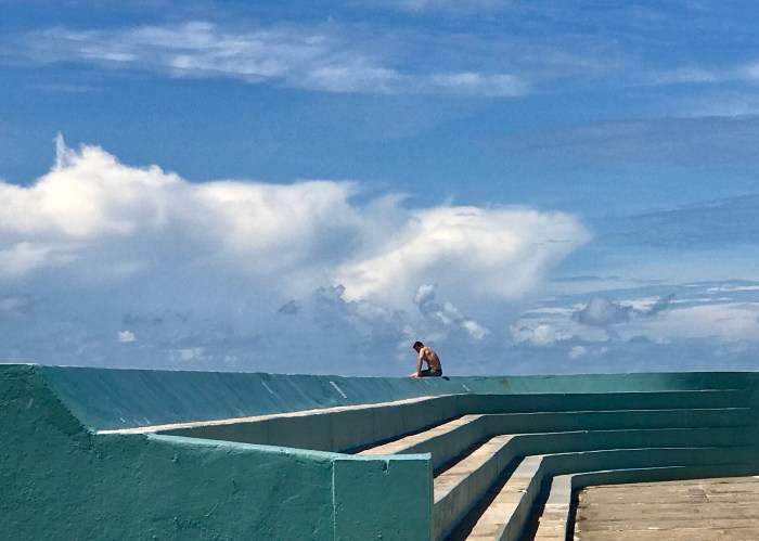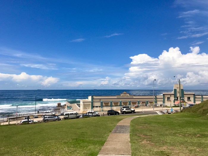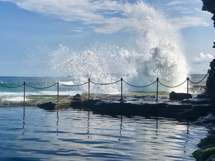 Vier Nächte genossen wir das feudale Leben in der Marina. Die erste Nacht in Newcastle verbrachten wir im Fluss am Anker, wo wir uns durch den Gezeitenwechsel jeweils um 180 Grad drehten. Windig war es auch und der Schlaf somit ein wenig unruhig. Umso mehr freuten wir uns über das Anlanden in der Marina, jederzeit an Land gehen, Joggen gehen, Waschmaschine und Duschen sind einige der Vorteile! Länger als geplant verbrachten wir dann dort und hatten nach den Tagen vielen Umherlaufens, ein gutes Bild von Newcastle bekommen. Newcastle entpuppte sich für uns als spannende Stadt mit einem tollen Gratis Museum (Newcastle Museum) wo wir einiges über die Vergangenheit der Industriestadt erfahren konnten. In Newcastle wird immer noch viel Kohle abgebaut, welche von hier aus vor allem nach Asien verschifft wird. Früher waren grosse Eisenwerke ansässig. Im grossen Hafen ist viel los, Schlepper führen die grossen Frachter im Fluss ins offene Meer. Das konnte man gut vom Hügel aus beobachten, wo das Fort Scratchley die Verteidigungsanlage die zum Schutz gegen die Russen (die niemals kamen) gebaut wurde. Wir erwischten für unsere Expeditionen wunderschöne Tage mit grandiosen Wolkengebilden, Sonnenschein und ab und zu einem Regenguss. Die Meerbäder aus dem 19. Jh. gab es immer noch und boten einen guten Schutz für ein ruhiges Bad neben den an die Küste preschenden Wellen. Weiter der südlichen Küste entlang gab es noch weitere alte Meerbäder: Das Eine war von Sträflingen während Australiens Anfangszeit, aus einer flachen Felsplatte an einer Steilküste herausgeschlagen worden. Die Geschichte war die, das Gouverneur Macquaries Frau krank war und jeden Tag schwimmen musste. Das Bad wurde speziell für sie gebaut und sie wurde täglich dort hinunter gebracht. Dieses Bad war während mehreren Jahren wegen Einsturzgefahr gesperrt worden und nun saniert wieder zugänglich gemacht worden. Somit war es ein Glück, dass wir diesen speziellen Ort geniessen konnten, wo die Wellen heftig und weiss schäumend über die Klippen hoch in das grüne, tiefe Wasser spritzte!