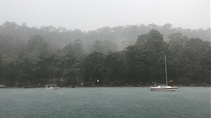 Wie die Gewitterlage schon angezeigt hatte, waren wir wieder in einem Tief. Also ein guter Zeitpunkt um nordwärts zu kommen. Ein kurzer Halt in Pittwater um unseren Seglerfreunden Paddy und Carolyn Adjeu zu sagen, war geplant. Die kurze vierstündige Überfahrt ins Pittwater erlebten wir noch mit gutem Wind und trockenem Himmel, welches aber bei der Ankunft änderte und unser Treffen mit den Freunden verunmöglichte. Wieder gab es Gewitter und wir Bootsleute wollen bei diesem Wetter einfach nicht das Boot alleine lassen…. Verständlich. Der nächste Tag war für die Reise zum Lake Macquarie reserviert, danach würde der Südwind wieder eingeschlafen sein, also sagten wir unserer Reisebegegnung per Telefon Adjeu.