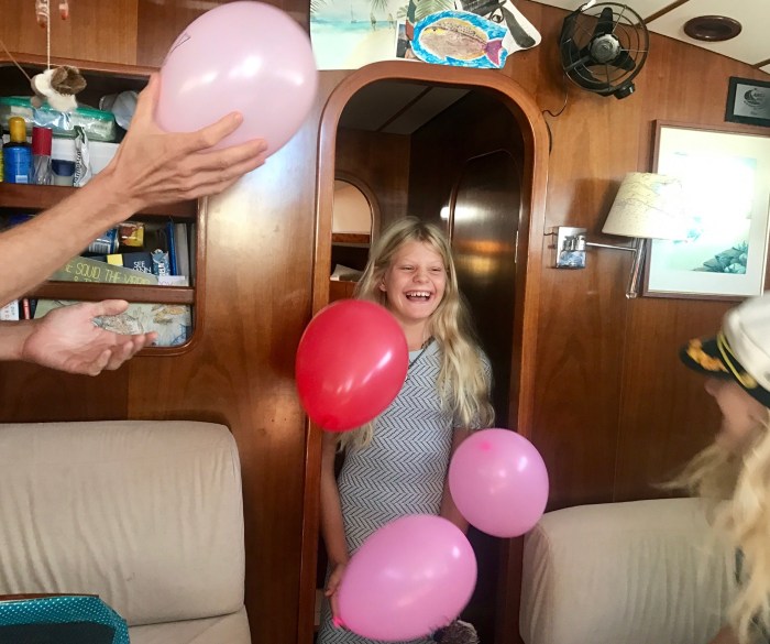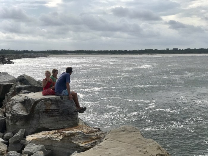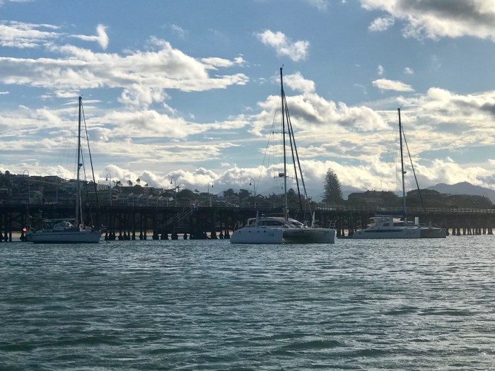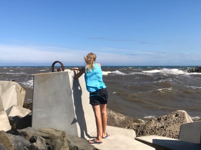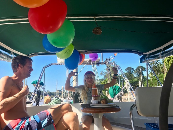 Am 22. März hatte Lenja Geburtstag. Zum zweiten Mal auf unserer Reise. Das letzte Mal feierte sie ihren zwölften Geburtstag auf dem Meer – auf der Überfahrt auf die Galapagos Inseln. Wir planten ein Strand Barbeque zu machen und fragten Jocelyn und Ken von Surfari, ob sie mit uns feiern wollten. Ein paar Spiele hatten wir auch vorbereitet! So verbrachten wir einen schönen Tag am Wasser. Das Wetter spielte immer noch zwischen Bewölkung und Sonnenschein, es war Aprilwetter, wie wir es auf der anderen Seite der Erdkugel kennen. Am Tag darauf machten wir einen Spaziergang auf die lange Mole, die zuerst mit einem Kiesweg versehen war und danach nur noch mit grossen Steinenquadern. Es war ein Spass, auf den Steinquadern zu balancieren um möglichst weit zum Ende der Mole zu kommen. Es war weit! Am Ende sah man wieder die verschiedenen Farbvermischungen des Wassers, welches sehr eindrücklich war. Nach dem Spaziergang waren wir noch auf dem deutschen Katamaran «Yara» mit Robert und Ursula auf ein Bier eingeladen. Es ist immer spannend, zu hören was andere Segler für Erfahrungen gemacht haben. Die Beiden hatten auch schon viele Seemeilen in ihrem Kielwasser hinter sich gelassen.
