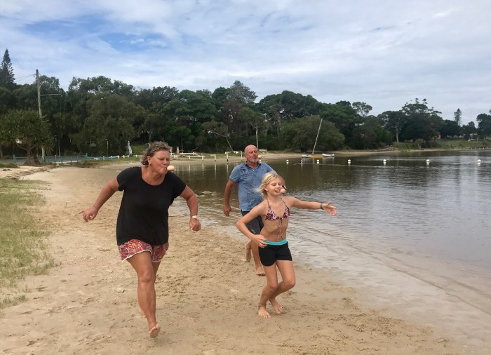 Wir waren ja auf unserer Reise durch die Südsee schon mehrmals Haien beim Schnorcheln begegnet. Darunter auch ein paar grössere Exemplare. Es war immer klar, dass es zum Beispiel beim Speerfischen sehr gefährlich werden. Seit wir in Australien weilen, hat sich das Thema, wohl zu Recht, verstärkt. Es gibt an der Ostküste, speziell auf der Höhe von Ballina/Yamba viele Haiattaken. Wir bekamen aber auch Geschichten vom Sydney Harbour zu Ohren. Der Unterschied liegt bei den Hai Arten, die hier seit vielen Millionen Jahren umherschwimmen, während wir in der Südsee oftmals kleineren Riffhaien begegnet waren, gibt es hier vermehrt die grösseren und gefährlichen Haiarten wie zum Beispiel der Weisse Hai, der Tigerhai und der Bullenhai. So bleibt dieses Thema bei uns immer im Hinterkopf. Aber schlussendlich wollen wir uns nicht zu sehr von Ängsten und Befürchtungen leiten lassen – doch werden wir uns an unseren gesunden Menschenverstand halten! Und wir liessen das Baden im Lake Macquarie…