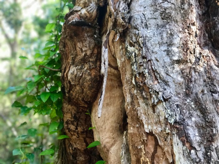 Beim Anlanden entdeckten wir zum ersten Mal ein Hinweisschild, dass hier auch schon mal gefährliche Salzwasser Krokodile gesichtet wurden! Oh weh! Nun waren wir also in diesem Gebiet abgekommen. Doch die Leute spazierten am Strand und es gab weit und breit keine weiteren Anzeichen auf eventuelles Vorhandensein dieser Raubtiere… Nur, beim Ankern sah ich etwas ziemlich grosses in der Nähe eines anderen Bootes aus dem Wasser tauchen und wieder hinein… Was das wohl war? Wir wollten einen kurzen Spaziergang durch den Busch machen und zu einem kleinen See wandern. Die Moskitos aber schwirrten sofort ganz gefrässig um uns herum, keine Chance! Es half auch kein Mückenspray, so drehten wir dann bald wieder um – nicht ohne noch ein paar wunderschöne Naturbilder von der Buschlandschaft gemacht zu haben. Das Tier, das ich gesehen hatte war, wie sich dann später durch ein Gespräch mit dem Halter des Bootes herausstellte, war ein «Dugong». Eine Seekuh, die sich nur durch Seegras ernähren. Schade dass wir sie nicht von nahem gesehen haben!