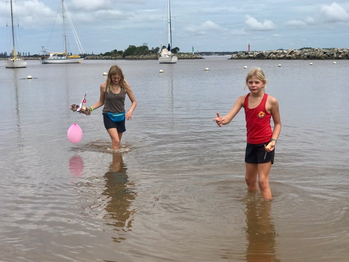 Am Sonntag war wunderbares Badewetter. Wieder einmal strahlte die Sonne, so wie man es von Australien erwarten könnte. Wir planten einen Badetag zu machen. Die Kinder und Kim gingen schon mal vor. Es gab die Attraktion «von der Brücke springen» und die Attraktion «Bodysurfen» mit den kleinen Brettern. Die erste Attraktion verlief ohne Zwischenfälle, doch, wer hätte es gedacht, bei der Zweiten passierte ein, zum Glück nur kleiner, Unfall. Bei einer falsch erwischten Welle geriet Lenjas grosser Zehennagel unter die Verbindung der Finnen und riss diesen fast vollständig weg. Oh weh! Lenja kam auf unserem Standup Paddleboard von Kim gesteuert zum Boot angefahren. Nach ein paar Recherchen stellte es sich heraus, dass es am einfachsten war, mit ihr ins Spital zu fahren, um den Rest des Nagels auch noch zu entfernen… Also nahmen wir das Taxi und fuhren an diesem Sonnentag ins Coffs Harbour Hospital! Die Erfahrung die wir da machten war sehr gut. Extrem nettes Personal und nicht überfüllt. Eine Stunde später sassen wir wieder im Taxi, zurück zum Boot!
