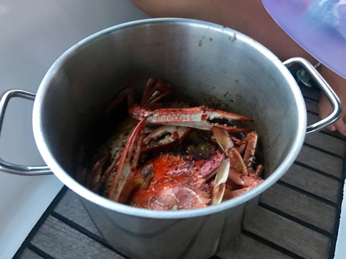 Nach zwei Nächten an dem ruhigen Ort mitten in der Grossstadt, fuhren wir ein Stück zurück um allenfalls einen Bootsladen zu finden. Aber da war nichts zu machen mit ankern oder festmachen – wieder waren die Buchten überfüllt mit Booten. Zudem fing es mächtig an zu blasen und der Himmel wurde schwarz. Bevor es so richtig mit dem Gewitter losging, waren wir schon wieder in unserer vorherigen ruhigen Ecke im Naturschutzgebiet.