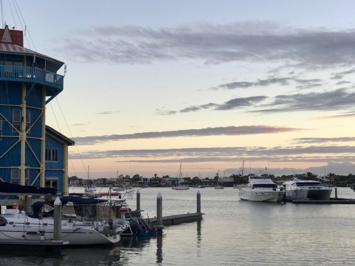 Am Freitagnachmittag, nach einem guten Segeltag, kamen wir am späteren Nachmittag in Bundaberg an. Nachdem Kim ein paar Tage zuvor wieder unseren Rumpf geschrubbt hatte und extrem viele kleine Muscheln entdeckt hatte, spielten wir mit dem Gedanken, die Hülle trotzdem noch hier in Australien zu streichen, die Variante wäre Thailand gewesen. Wir telefonieren noch während des Segeln in die Werft, ob wir vielleicht das Boot noch am gleichen Tag herausnehmen könnten. Der Termin war dann aber am nächsten Tag um neun, was auch super war! So endeten wir kurzerhand später schon wieder in der Marina um dann am nächsten Morgen parat für das Auskranen zu sein! Die Marina liegt beim Flusseingang, bei den Burnett Heads. Bundaberg liegt dann aber weiter zehn-fünfzehn Seemeilen im Landesinnern am Fluss. So ist diese Marina wieder weit von allem entfernt!