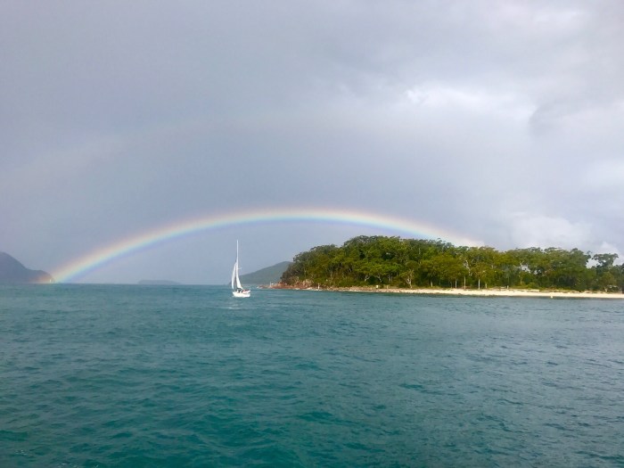 Der nächste Tag war wie wir es in letzter Zeit oft erlebt hatten, wieder bewölkt. Es gab seit Wochen fast keine zwei Tage nacheinander, wo die Sonne so richtig schien. Wir konnten all die Menschen die sagen, Australien sei so heiss, nicht nachvollziehen. Doch wir waren in der «Wet Saison» unterwegs. Und immer noch recht südlich, vielleicht erklärt sich das Wetter darum als frisch und nass. Aber nichts desto Trotz, uns gefällt’s und wir wollten wieder weiter. Uns zieht es in den Norden – wieder dem tollen, türkisblauen Wasser entgegen und dem Schnorcheln!