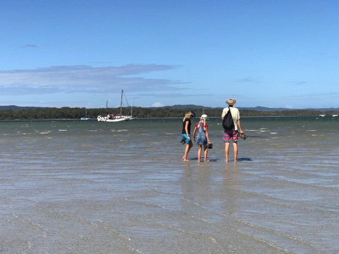 Wir wussten, das Wetter wird in den nächsten Tagen nicht so toll werden. Weitere Regenfälle waren vorhergesagt und der Wind war nicht geeignet, um weiter zu segeln. Wir machten uns auf ein paar ruhige Tage hier in Iluka bereit. An einem trockenen Nachmittag, nach dem obligaten Schulmorgen, machten wir uns auf, auf einen Spaziergang durch den «Word heritage» Rainforest. Die Besonderheit war, dass dieser Regenwald so nahe am Meer war, geschützt durch einen hohen Hügel. Der Spaziergang war etwa eine Stunde durch das grüne, schöne Buschwerk. Nach einem kleinen Aufstieg auf den Hügel, konnten wir auf das tosende Meer herunterblicken. Eigentlich wollten wir noch schwimmen. Aber es war uns nicht danach. Das Meer schlug zu wild über die Felsen. Aber wir genossen die Kraft und die Meeresluft und die vielen Muscheln, die es plötzlich am Ufer wieder zu sammeln gab.