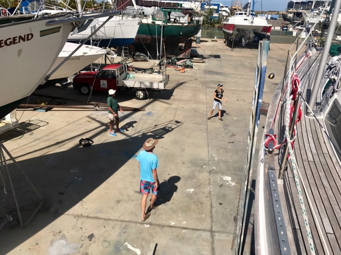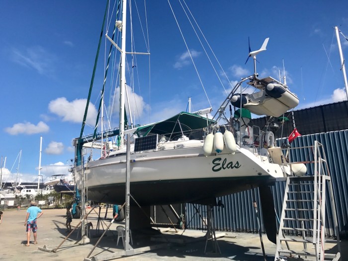 In Bundaberg kurzentschlossen das Boot aus dem Wasser nehmen und starke Erinnerungen an die Vuda Marina in Fidschi