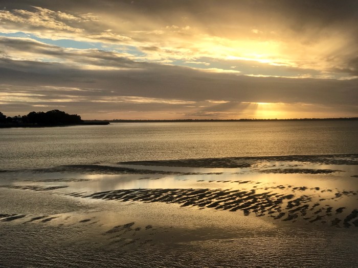 Gegen späteren Nachmittag kamen wir zu der grossen Bucht, vor der «Wide Bay Bar», wo man auch die Nacht verbringen könnte, falls die Bedingungen für die Bar nicht stimmten oder man zu spät dran war. Einen kurzen Moment lang war ich unsicher, ob wir nicht besser das morgendliche Tageslicht abwarten sollten, unsere Berechnungen erschienen mir alle zu knapp: Das Tageslicht und die Gezeitenhöhe… Aber der Ankerplatz war auch keine perfekte Alternative, zu unruhig durch den Wellengang und 10sm von der Bar entfernt. Wir fuhren voran, dem Abendlicht und der Bar mit der «Mad Mile» (Der verrückten Meile) entgegen. Und wieder war es aufregend – spannend aufregend. Wir haben von der Coast Guard zwei Wegpunkte zur Ansteuerung bekommen. Durch das Unwetter mit den vielen Regenfällen haben sich die Sandbänke relativ stark verschoben. Vor uns konnten wir auf dem «AIS» beobachten, wie bereits «Surfari» und ein grosses Motorboot den Weg zu den Wegpunkte nahmen. Jocelyn von Surfari berichtete uns dann, als sie bereits im sicheren Innern angelangt waren, dass es gut gegangen sei und die Bedingungen gut seien. Das war ja schon mal gut. Unterdessen waren wir dann auch auf unserem ersten Wegpunkt angelangt. Von da an mussten wir den zweiten ansteuern und weiter gab es dann eine Angabe der Kursrichtung. Die «Wide Bay Bar» ist wie der Name sagt, sehr weit. Wir haben zuvor noch nie bei einer Sandbar so viele wild durcheinander gehende Wasserbewegungen gesehen. Wir waren auf der «Mad Mile», auf unserer Backbordseite brachen die Wellen. Hier musste eine sehr spezielle Situation der Wasserbewegungen sein, erzeugt durch das Stoppen des Wassers auf den Sandbänken und durch die ein und ausgehende Strömung von Ebbe und Flut. Wie gesagt, es war ein wildes Durcheinander, doch irgendwann wurde es wieder ruhiger. Wir waren drin. Unterdessen hatten wir gerade noch das letzte Tageslicht, um Ankern zu können. Es gab keine grosse Wahl mehr, da wo wir waren, liessen wir den Anker runter. Auch im Innern des Flusses stimmten die Tiefenangaben nicht mehr, so konnten wir uns nicht auf unsere Elektronische Navigation verlassen. Für eine Nacht war es in Ordnung. Neben uns waren noch ein paar andere Boote geankert, unter anderem Surfari. Aber für einen gemeinsamen Schlummertrunk war es an diesem Abend zu spät!