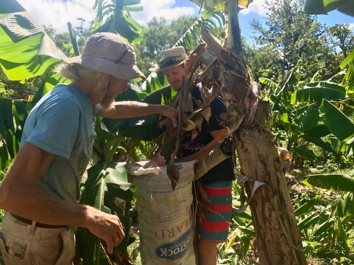 Wir bekommen Bananen aus dem Homestead Garten