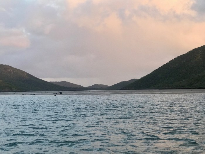 Am nächsten Morgen waren wir vor Shaw Island. Unschlüssig über unsere Absichten in Bezug auf das Wetter und Reiseziele. Wir entschlossen uns dann die Zeit zu nützen und noch weiter nördlich zu fahren. Es zog uns nach Airlie Beach, Einkaufen und das Landleben geniessen! Vorerst ankerten wir dann vor der Whitsunday Island, beim Dugong Inlet. Unterdessen begann es dann auch zu regnen, der Himmel war trüb und wir verbrachten den Rest des Tages an Bord.