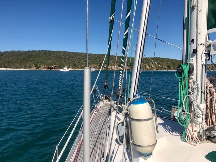 Nachdem wir den zweiten Tag noch bei Great Keppel Island verbracht hatten, uns wieder mal intensiv der Schule gewidmet hatten und zur Belohnung uns mit anderen Seglern, die alle bei der Indonesien Rally mitmachen, zum Sundowner am Beach getroffen hatten, hoben wir am frühen Morgen den Anker um in Richtung «Port Clinton» zu segeln. Wir hatten uns zum Tagestrip entschieden, weil wir doch recht müde waren nach dem letzten Nachttörn.