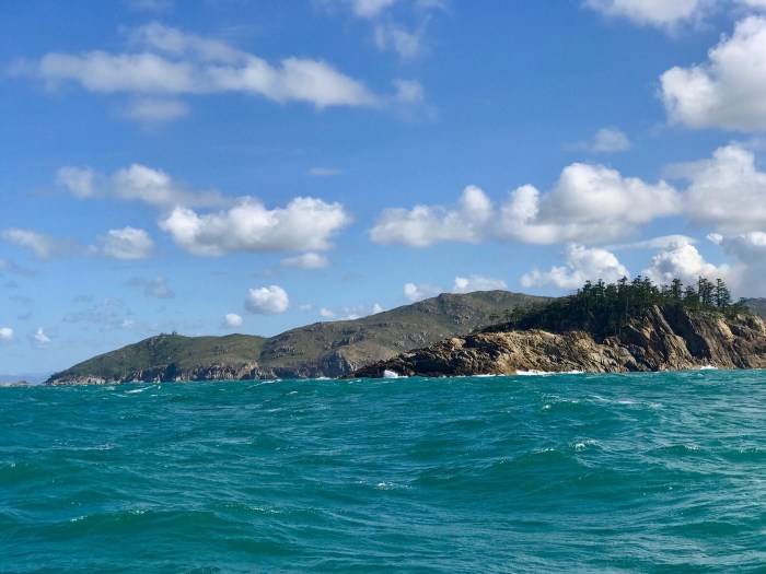 Von der Strecke Middle Percy Island zu den Whitsundays hätte es noch viele Möglichkeiten zum Ankern auf diversen südlichen Inseln der Whitsundays gegeben. Zum Beispiel die Insel Scafell wo es viele Langusten geben soll… Uns waren aber die kleinen Buchten im Norden dieser Inseln beim vorhergesagten Wind einfach zu wenig geschützt. So hatten wir vor bis zu der grösseren im Süden liegenden «Shaw Island» zu segeln, die einen langen im Nordwesten liegenden Strand hat.