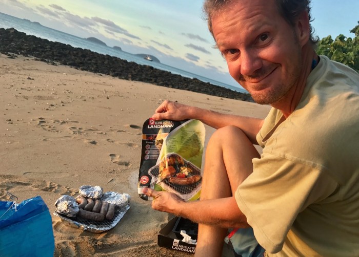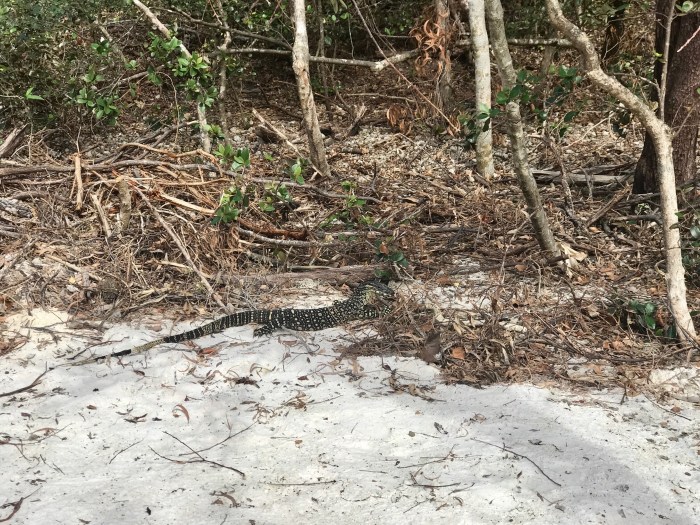 Zuerst fühlte ich eine kleine Enttäuschung, als ich mich umherblickte nach dem Ankermanöver: Grünlich trübes Wasser. Die Insel schien aus Distanz auch nicht gerade aussergewöhnlich. Doch als wir dann unsere Erkundungstour ein paar Stunden später auf die Insel machten, waren wir vom Gegenteil überrascht: Das Wasser am Strand war glasklar und grünlich leuchtend wie es über die schwarzen Felsen schwappte. Es gab einen grossen Sandstrand mit gelblichem Sand. Wir wanderten dann etwa drei Stunde quer über die Insel, durch ein verwahrlostes, verlassenes Resort und über den Hügel mit Ausblick auf beide Seiten der Insel wieder zurück zu unserem Strand. Meine Kamera war nach diesem schönen Spaziergang wieder mit einigen tollen Naturaufnahmen ergänzt, mit Bildern der Natur, die mich immer wieder in Staunen und Begeisterung versetzten.