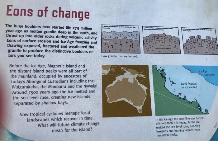Als ersten Anlaufspunkt hatten wir vor, in einen der zwei tiefen Einschnitte, dem «Nara Inlet» auf der «Hook Island» hinein zu fahren. Auf dem Satellitenbild sieht das Wasser unheimlich hell aus und das Ufer sandumrundet. Doch als wir am Eingangsriff vorbei sind und tiefer in den Einschnitt hineinkommen, sahen wir dass dem nicht so war. Kein Strand in Sicht. Die Bewaldung der Insel kam überall bis zum Wasser, was einen irgendwie befangenen Eindruck auf mich macht. Mit dem Niedrigwasser kam dann nach und nach ein kleines Strändchen zum Vorschein. Dort legten wir mir unserem Dinghi an und dort war auch der Weg auf den kleinen Hügel wo sich eine Höhle befindet mit alten «Aborigine Höhlenmalereien». Es gab Informationsschilder und sogar eine Toninstallation mit Stimmen von Menschen von dem ehemaligen Aborigine Clan, der in der Vergangenheit auf der Insel gelebt hatte. Vor einigen Jahrtausenden waren die Whitsundays noch mit dem Festland verbunden weil der Wasserspiegel zu dieser Zeit viel niedriger war.