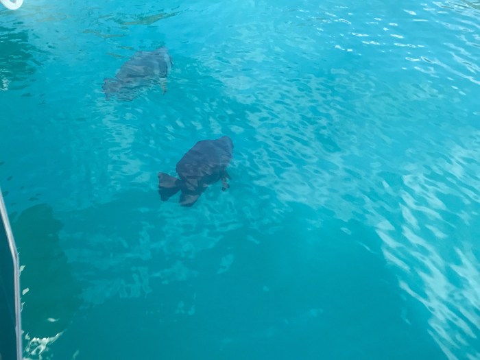 Zurück beim Ankerplatz erlebten wir noch ein anderes Highligt. Zum ersten Mal sahen wir eine Sehkuh mit ihrem Jungen – «Dugongs». Diese seltenen Säugetiere leben ausschliesslich von Seegras und dies zu Hauf.