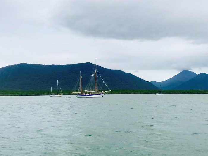 Gut gibt es die anderen Cruiser. Man bekommt so einiges zu hören und lesen von all den gefährlichen Kreaturen die es in Australien, oder eben hier in Queensland, gibt: Die riesigen Salzwasser-Krokodile und die Stinger Quallen, die es vor allem im Sommer gibt, die tödlich sein können… Wir lasen und hörten, dass wir einen «Stinger-Suit» eine Ganzkörper-Anzug zum Schwimmen brauchen. Bei allen Plätzen die wir aufsuchen sind wir wachsam ob einer dieser Gefahren. Es ist gut gibt es andere Cruiser, vor allem jene die hier leben und an diesen Orten schon gewesen waren – so relativieren sich die Gefahren und schrumpfen oft auf ein Minimum: Die Krokodile sind bei den Flüssen in Meeresnähe und bei den Mangrovensümpfen. Die Stinger Quallen gibt es im Sommer. Natürlich werden wir trotzdem wachsam sein, von Ort zu Ort wo wir hinkommen!