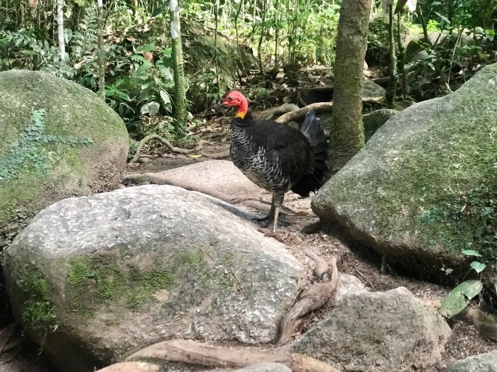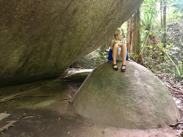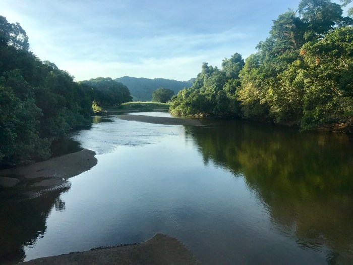 Schon lange hatten wir vor, wieder mal ein Auto zu mieten um ein wenig mehr auch im Landesinneren entdecken zu können. In Port Douglas machten wir es uns wieder mal möglich. Es gab viel zu machen in der Umgebung. Tierparke mit den seltenen Tieren, wie dem seit der Saurierzeit lebende, straussenähnliche Vogel, dem «Cassowary» und Anderen. Oder eine stündige Fahrt mit einem Boot auf dem Daintree River, um Krokodile in ihrer natürlichen Umgebung zu sehen zu bekommen. Das wollten wir machen! Bisher hatten wir nämlich noch keines von der Elas aus erspähen können! Doch auf unserem Weg lag noch die Schlucht, der «Mossmann George» welchen auf den Prospekten auch toll aussah. So hielten wir da und machten einen wunderschönen Rundweg durch den dichten, einem der ältesten Regenwälder Australiens, dem «Daintree Rainforest« und badeten im grünen, klaren Wasser des Flusses welcher voll von runden, grossen Granitblöcken war. Das Wasser war kühl und erfrischend!