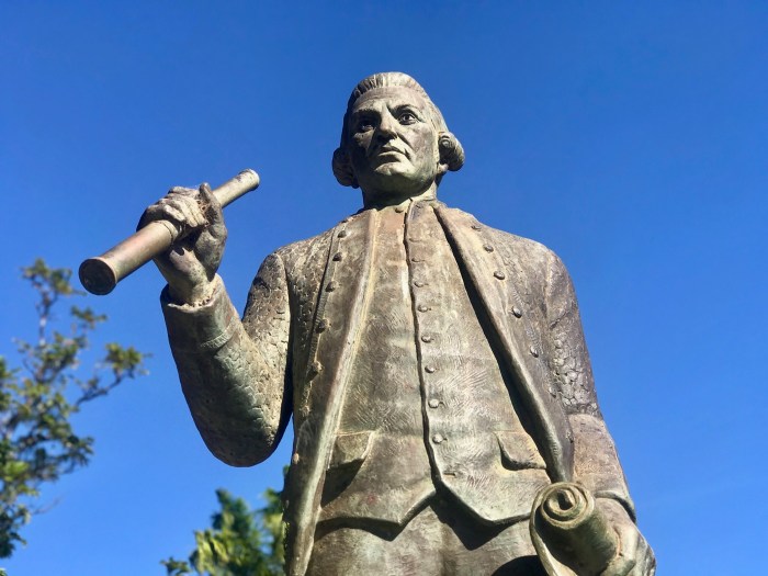 James Cook, geboren 27.Oktober 1728, entdeckte schon früh seine Fähigkeiten als Kartograph und Seefahrer. Weil sein Vater ein Tageslöhner war, besuchte er nur kurz die Schule und heuerte mit 18 Jahren auf einem Kohledampfer an. Zuerst fertigte er sehr genaue Karten von Norwegen an, was auch der Regierung nicht nicht unbemerkt blieb. Schon bald erhielt er das Kommando über ein Schiff und 1768 startete er seine erste Reise auf dem Schiff Endeavour. Der Offizielle Grund seiner Reise, die ihn an Kap Horn vorbeiging die Südsee führte, war: Dass er den Venus Transit auf Thaiti beobachten sollte. Jedoch hatte er auch noch einen zweiten geheimen Auftrag. Nämlich dass Land Terra Australis aufzuspüren, weil man hoffte, dort unermessliche Schätze zu finden. Bevor Cook kam, war der ganze Südpazifik ein einziger weisser Fleck auf einer Karte.Doch nach Cooks Reise war seine Karte gespickt mit den kleinen Inselchen von Ozeanien. Doch Cooks Gedanken kreisten nicht nur ums kartographieren und navigieren sondern auch um Kulturen und das Wohl seiner 94 Mann starken Besatzung. Denn bei einer langen Seereise war es fast „normal“,dass Seemänner an Skorbut starben. Eines von Cooks grossen Zielen war es dies zu verhindern und er fand heraus das diese Grausame Krankheit von Vitamin C Mangel herrührt! So zwang er seine Männer, jede Woche ein Salzwasserbad zu nehmen und Wochenlang Sauerkraut zu essen. Und es half! Auf seiner ersten Reise starben „nur“ sieben Männer, was zu dieser Zeit ein Rekord war.Und seitdem viele andere Kapitäne an an James Cook ein Beispiel genommen haben, leben die Seefahrer heute länger. Doch zurück. Nachdem er also den Südpazifik und seine Kultur ausgiebig studiert und kartographiert hatte, setze er im April 1770 als erster weisser seinen Fuss auf Australischen Boden. Er nannte dieses Gebiet:“New South Wales“. Während der langen Reise nach Norden, immer am Festland entlang, kartographierte er wie zu erwarten, trotz der vielen gefährlichen Riffen, den ganzen Weg. Doch am 11.Juni 1770 passierte etwas schreckliches mit dem niemand mehr gerechnet hatte. Die Nacht war dunkel und Kapitän Cook hielt Nachwache. Doch da plötzlich“RUMS!“ Die Endeavour war auf ein Steinkorallen Riff gelaufen und sass fest. Jetzt herrschte Alarmstufe Rot, die gesamte Mannschaft war auf den Beinen und sie nahmen schnell die Segel runter. Danach begannen sie auf Cooks Befehl hin, alle möglichen Ballaststoffe über Bord zu werfen, damit sie wieder frei kamen. So landeten vier änker, Trinkwasser, Esswahren, Steine und alles mögliche im Wasser, bis sie schliesslich 40-50 Tonnen leichter waren und somit von Riff kamen! Trotz des Lecks kamen sie vom Endeavour Riff weg und schafften es am Cape Tribunal vorbei, um 11.00 beim höchsten Hochwasser, in den nächsten Fluss, den sie Endeavour River tauften. Dort setzten sie ihr Schiff auf eine Sandbank und stellten am Land ein Zeltlager für die nächsten Wochen auf. Während der einmonatigen Reparatur, nutzten Captain Cook, Joseph Banks und die elf Wissenschaftler die Zeit um die Flora und Fauna in der Botanic Bay und weiter, zu studieren. So kletterten sie mal auf den Mount Cook um zu Kartographieren, mal auf den Grassy Hill. Die Begegnung mit den Einheimischen, also den Aborigines, war zu Beginn noch recht freundlich, bekam dann aber doch noch ein bisschen Schärfe.Was James Cook damals noch nicht wusste und womit er viel Glück hatte, war dass er direkt in Neutralem Aborigines Gebiet gelandet war. Nämlich dort wo sich zwei verschiedene Stämme trafen.Und somit einen Krieg verhinderte! Nachdem die Reparaturen an der Endeavour fertig wurden. Setzte er seine Reise durch den Indischen Ozean am Kap der guten Hoffnung vorbei fort und traf 1771 wieder in England ein. 200 Jahre später 1971 fand man beim Endeavour Riff, nach langem Suchen, den Treibanker den man in der Nacht am 11 Juni 1770 über Bord hatte gehen lassen. Die Endeavour aber leistete noch lange nach Cooks Tod auf Thaiti treuen Dienst als Sträflingsschiff und Soldaten Transporter während des Amerikanischen Krieges. Und obwohl sie auf „Lord Sandwich“ umgetauft worden war, Fand man sie 2016 im Hafen von Rhod Island wo sie mit vielen anderen Fracks immer noch liegt.