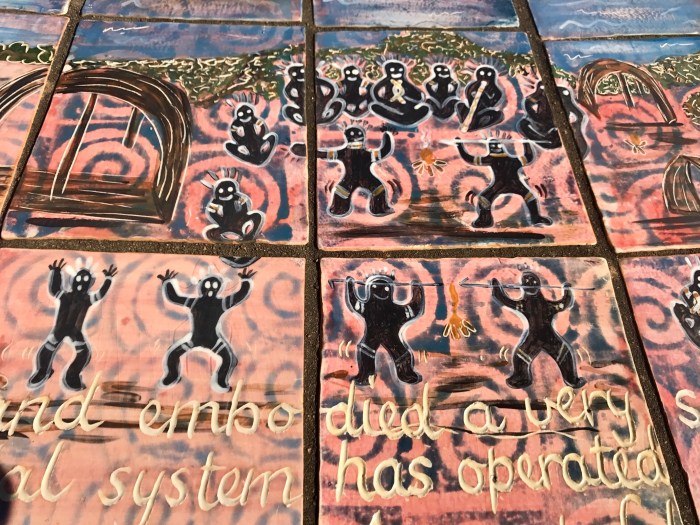 Später zogen wir dann mal los und wanderten die lange Strasse dem Fluss entlang. Überall befanden sich kleine Informationstafeln. Ein grosser Stein markierte die Stelle an der das Schiff «Endeavour» gelandet war. Ein Monument mit getöpferten, beschriebenen und bemalten Platten erzählte die ganze Geschichte Cooktowns kurz, in welcher die Landung Cooks und seine Begegnung mit den Aborigines und die Masseneinwanderung von Tausenden von Chinesen während der Goldgräberzeit. Es war wie «Wandern in der Geschichte».