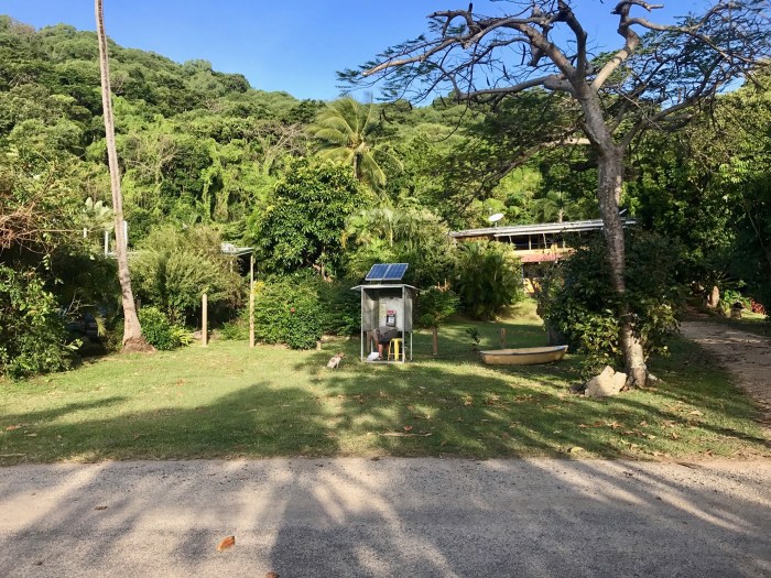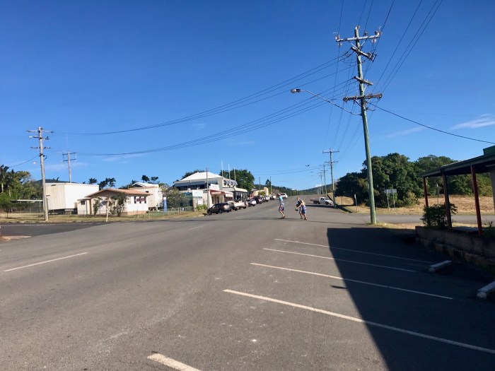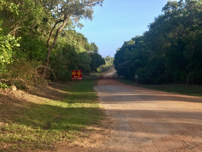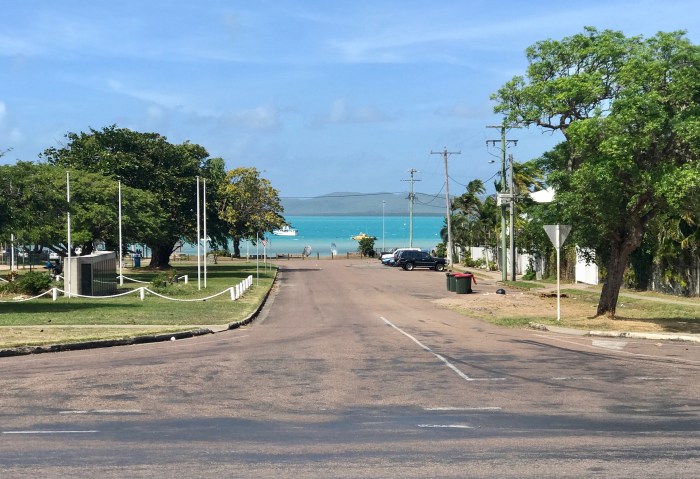 60sm entfernt war «Portland Road». Eine der wenigen Stassen die gegen Norden geht, führt ostwärts bis an die Küste. Es gibt da aber nichts weiter als eine Telefonzelle und ein paar Häuser und einem Café. Weiter südlich ist der «Lockhart River Airport». Es ist hier im Norden von Australien schon eine gottverlassene Gegend! Unsere Boote «Elas» und «Billaroo» lagen aber sicher vor Portland Road vor Anker und es war nach dem gemütlichen Segeltag noch gut Zeit für einen kurzen Spaziergang an Land.