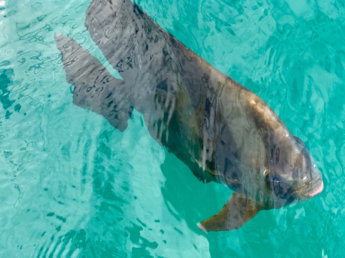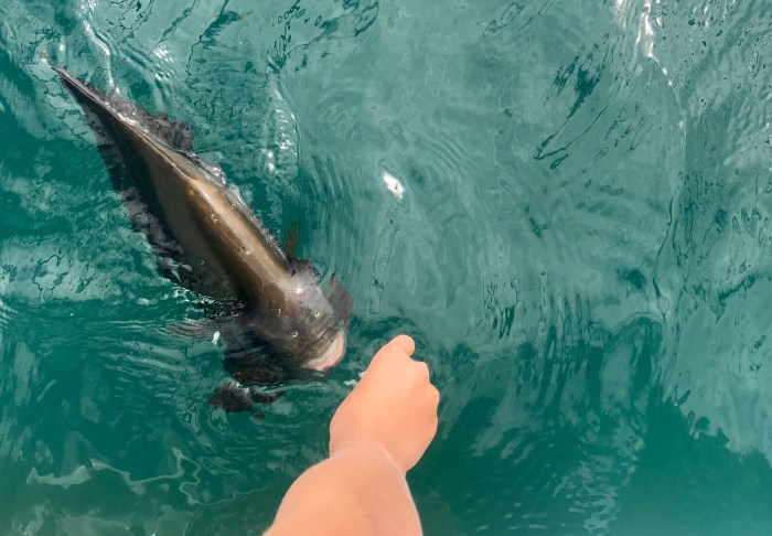 Diese grossen Fische kommen zum Schiff und wollen gefüttert werden!