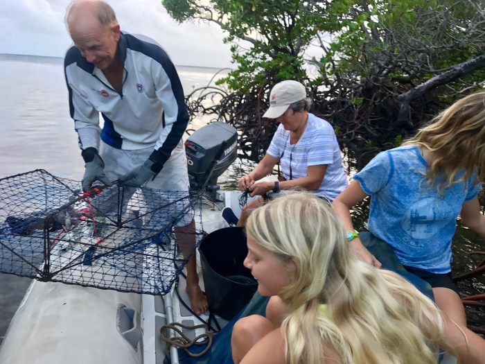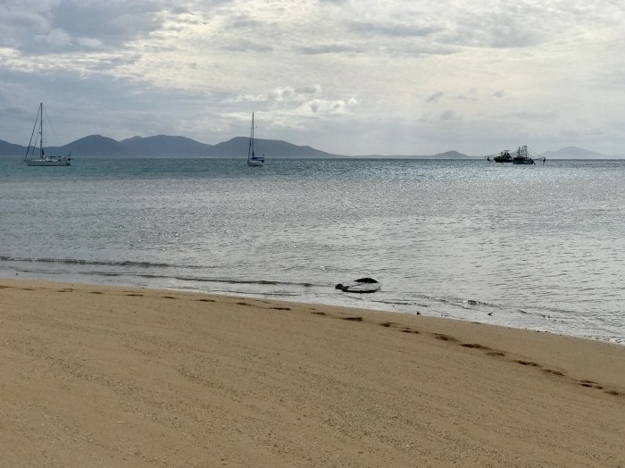 «Howick Island» war die Destination. Bei der Insel soll es viele Mud Krebse geben! Bei der Ankunft liessen es sich Sue und Kerry nicht nehmen und brachten noch die Krebs «Pods» (Fallen) aus und wir begleiteten sie. Die Insel war von Mangroven umgeben und ein Krokodil Gebiet. Aber auf diesem Weg konnten wir noch ein wenig von der Insel sehen. Das Wasser war erstaunlicherweise sehr klar! Und es stoben ein paar sehr grosse Wasserschildkröten durchs Wasser, gehetzt durch den Dinghy Motor – eine grosse Welle hinterlassend!