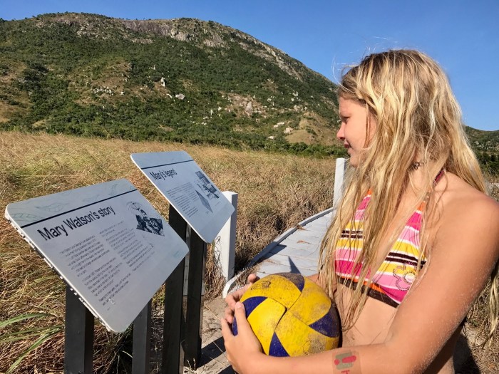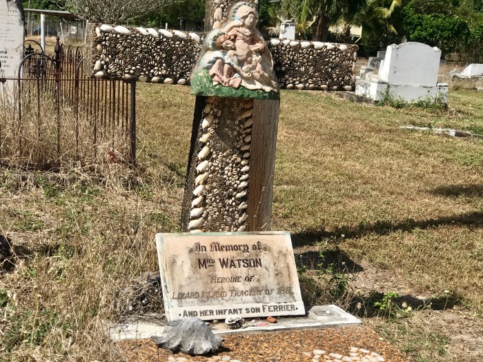 Als Cook im 17Jh eine Passage durch das Great Barrier Reef gefunden hatte und bei der Inselgruppe vorbei kam wo wir uns gerade aufhalten, erforschte er jeden Tag eine der Insel und benannte sie nach dem jeweiligen Wochentag. So kommt es dass es in dieser Gegend eine «Monday Island», eine «Tuesday Island», eine «Wednesday Island», eine «Thursday Island» und so weiter gibt. Die in der Mitte eingebettete «Thursday Island» ist unterdessen die berühmteste dieser Inseln. Sie liegt geschützt umgeben und wurde auch im Ersten und Zweiten Weltkrieg als Stützpunkt verwendet.