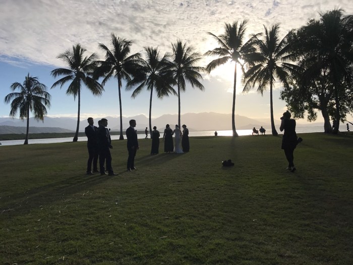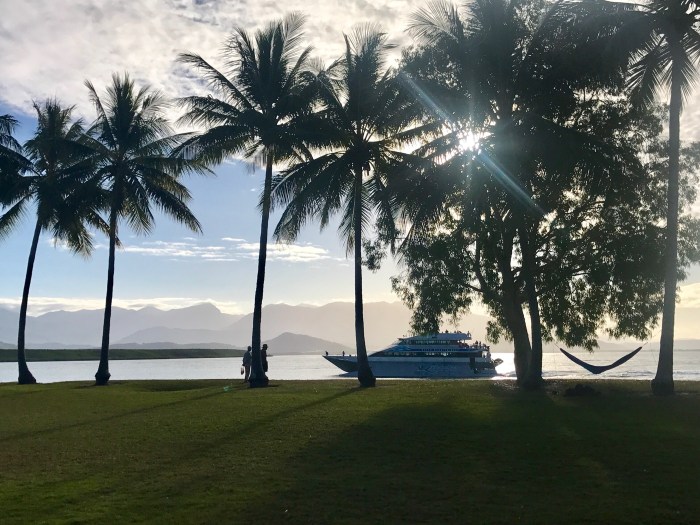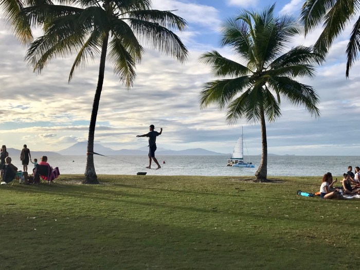 Wir konnten auf der kurzen Fahrt zum Sailing Club, wo wir unser Dinghy lassen konnten, keines dieser Exemplare entdeckt, obwohl wir es noch interessant gefunden hätten! Wir schlenderten anschliessend durch Port Douglas und genossen die Ambiente am palmenumsäumten Strand, wo gerade eine Hochzeit stattfand. Unser erster Eindruck von dem mondänen Port Douglas täuschte nicht: Es war neben den Grossstädten Brisbane und Sydney der herausgeputzteste und gestylteste Ort, den wir auf unserer Reise in Australien getroffen hatten. Die Restaurants locken mit toller Einrichtung und feinem Sea Food. Leicht abgewrackten Seiten der Stadt, welchen wir an vielen anderen Orten begegnet waren, fanden wir in Port Douglas nicht! Ein schöner Ort.