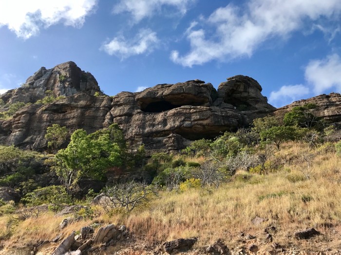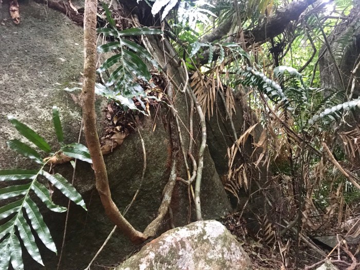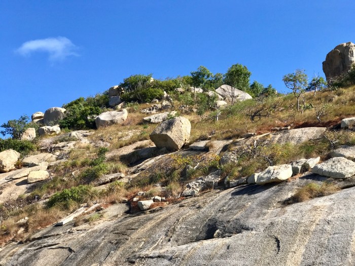 Wir wandern und klettern teilweise an grossen Felsblöcken vorbei