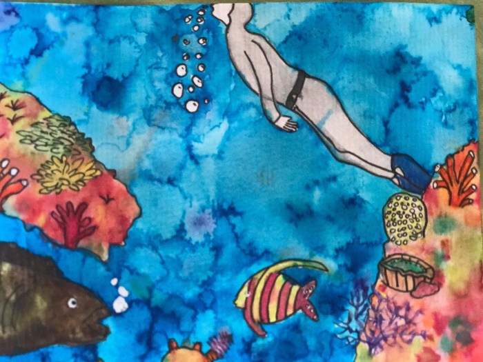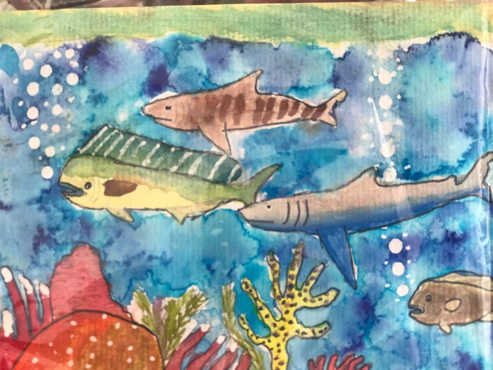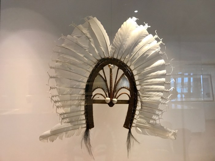 Unser Aufenthalt auf Horn, beziehungsweise Thursday Island war erfüllt von der Gesellschaft mit anderen Seglern, dem Vorbereiten auf den 5 Tages Törn mit Einkaufen, Diesel besorgen, Gas auffüllen ect. und dem Behördengang zum Ausklarieren, wo wir wieder zig Zettel ausfüllen mussten! Ein Highlight war das Kunstmuseum auf Thursday Island, wo gerade ein Kunstwettbewerb von ausschliesslich«Torres Strait Islander»-Künstler und Künstlerinnen, stattfand. Viele der Kunstarbeiten wurden mit den sogenannten «Ghost-Net» (Geisternetze), verlorene Netze von Fischerbooten die im Meer treiben und an die Strände getrieben werden, gefertigt. Es entspricht den «Torres Strait Islanders» aus ihrer Vergangenheit, Dinge zu verflechten und zu vernähen, nur wurden dazu dazumals Organisches verwendet.