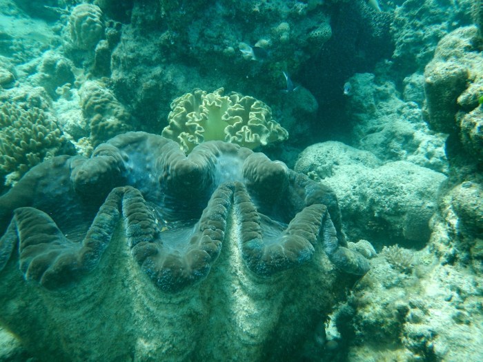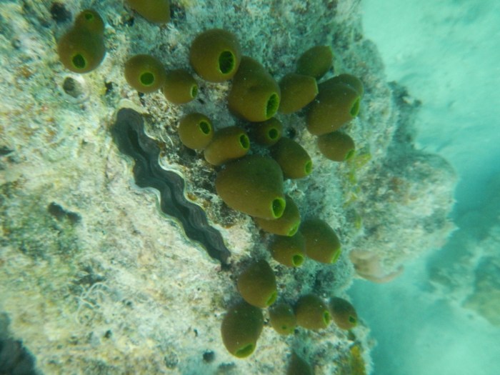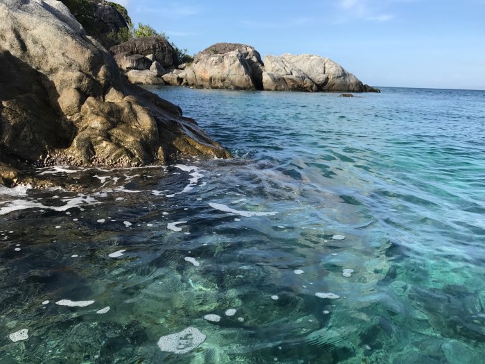 Die Insel war von Riffen umsäumt, doch der kurze Schnorchelversuch zeigte uns, dass das Wasser hier auch wieder sehr trüb war. Leider! Die Korallen lagen viele oft unter einer dicken Dreckschicht. Enttäuschend für uns, aber unterdessen mit den in der Umgebung gemachten Erfahrungen, hatten wir auch nicht mehr erwartet!