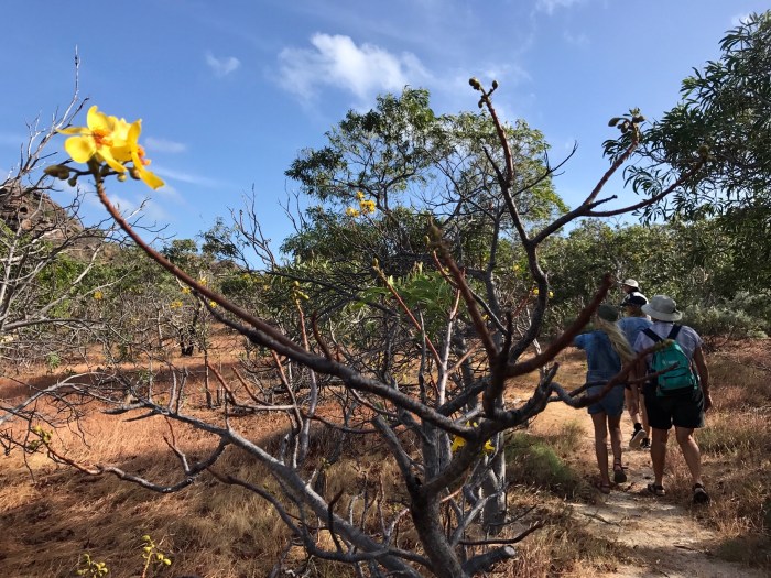 Von einer einsamen Insel zur Anderen. «Howick» zu «Flinders Group». Eindrückliche Aborigines Höhlenmalereien und nackte Bäume mit gelben Blumen