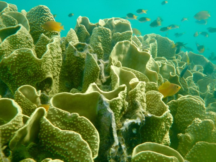 Das Schwefelgelb der Korallen leuchtet durch das Wasser!