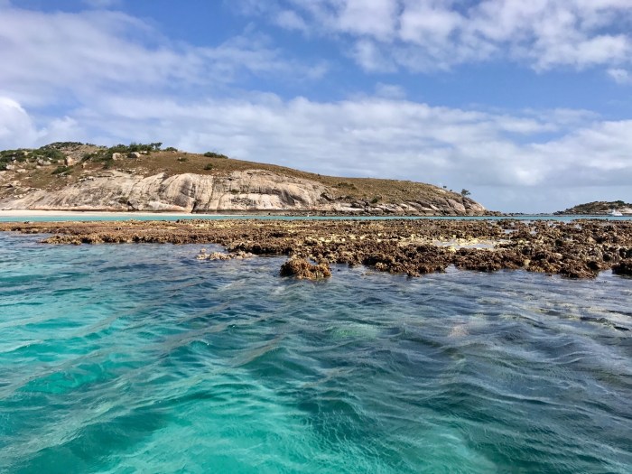 Blick auf die Nachbarsinsel von Forbes Island, welche oftmals nur von den Fischern aufgesucht wird