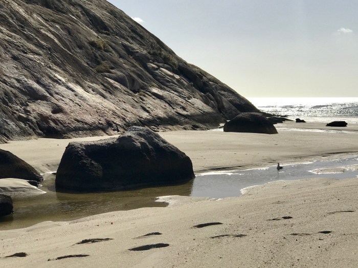 Der Strand ist voller Steine, ausser an einer Stelle wo in der Vergangenheit Trinkwasser Fässer zu den Schiffen gebracht wurden