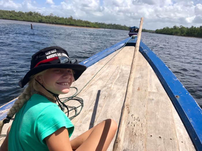 Am nächsten Tag wollten wir eigentlich bei der Exkursion aussetzen. Ich war immer noch mit meinen Halsschmerzen am ringen und wir kamen vor lauter Ausflügen nicht mehr zum Schule machen! Aber kurzentschlossen änderten wir unsere Meinung und nahmen an dem geplanten Ausflug zur «Mangrove Island» teil. Daraus ergab sich dann ein ausserordentlich reicher Tag den wir nicht missen wollen würden!