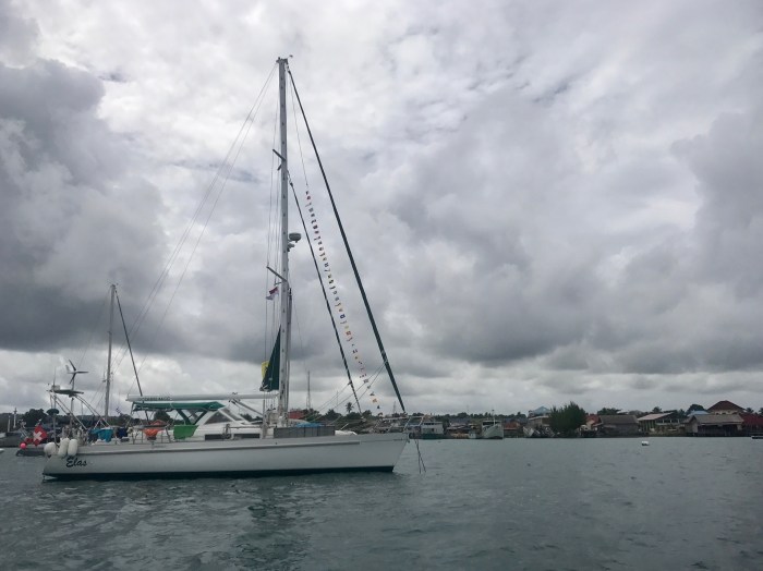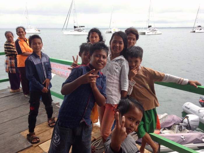 Der Tag unserer Ankunft war regnerisch. Bei mit hatten sich Halsschmerzen angekündigt und ich verbrachte den Tag auf dem Boot. Kim und die Kinder machten sich ein erstes Bild von «Buton Utara».