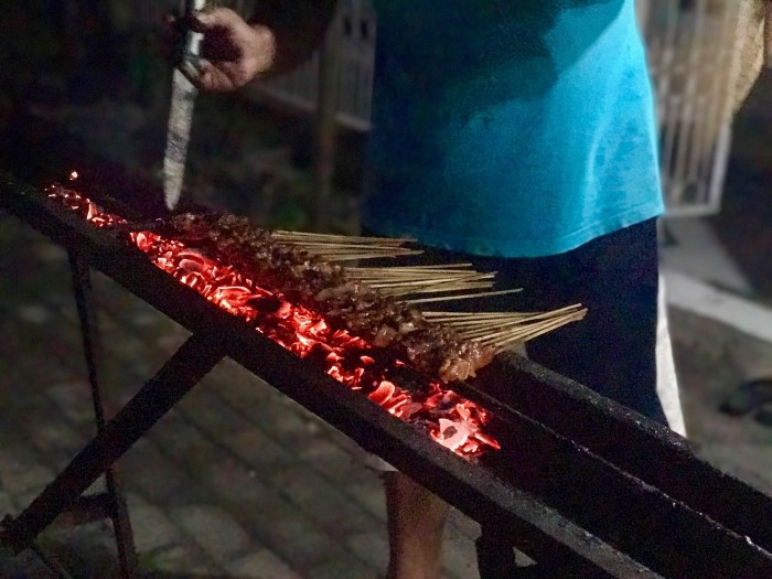 Die berühmte Spezialiät: Die Sate Ayam – Pouletspiesse mit Erdnusssauce