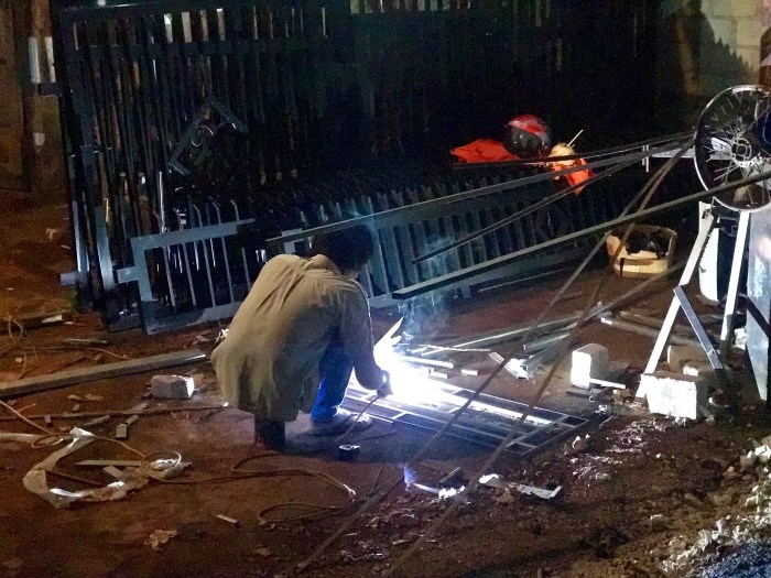 Ein Schweisser bei der Arbeit – Es gibt einige dieser Workshops hier und man kann auch viel machen lassen