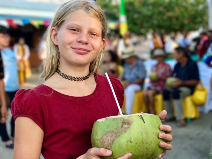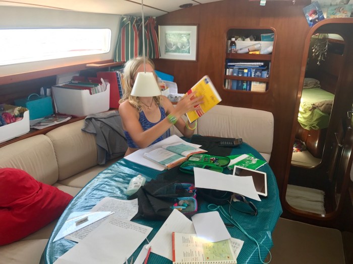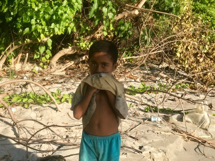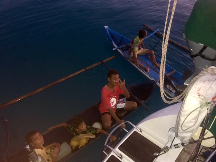 Bald schon bekamen wir dann Besuch von den einheimischen Kindern die nach Büchern und Stiften fragten. Ich war zu Beginn ein wenig skeptisch. Es gab Orte wo die Kinder zu betteln anfingen, was traurig ist und auch viel kaputt macht. Mit Google Translation verständigten wir uns dann mit den Kindern und wieder einmal mehr war da eine grosse Sympathie. Der eine ältere Junge kam dann später sogar mit seinem Englisch Wörterbuch und zeigte uns, dass er mit den Büchern Englisch lernen wollte. Wir gruben in unseren Schränken nach Kleidern und sonstigem Nützlichen, das die Kinder dann wie erbeutete Schätze in ihren Kanus heimbrachten. (Und natürlich kamen sie immer nochmal wieder, wer weiss – vielleicht gibt es ja noch mehr!) Zwei Päckchen farbige Perlen liessen jedenfalls die Mädchenaugen aufleuchten, und das ist einfach nur schön!