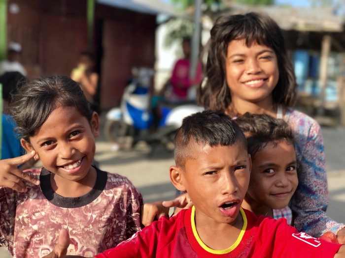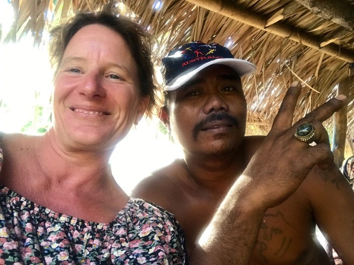 Mit Händen und Füssen und mit Hilfe von einem Indonesisch-App können wir ein wenig miteinander plaudern